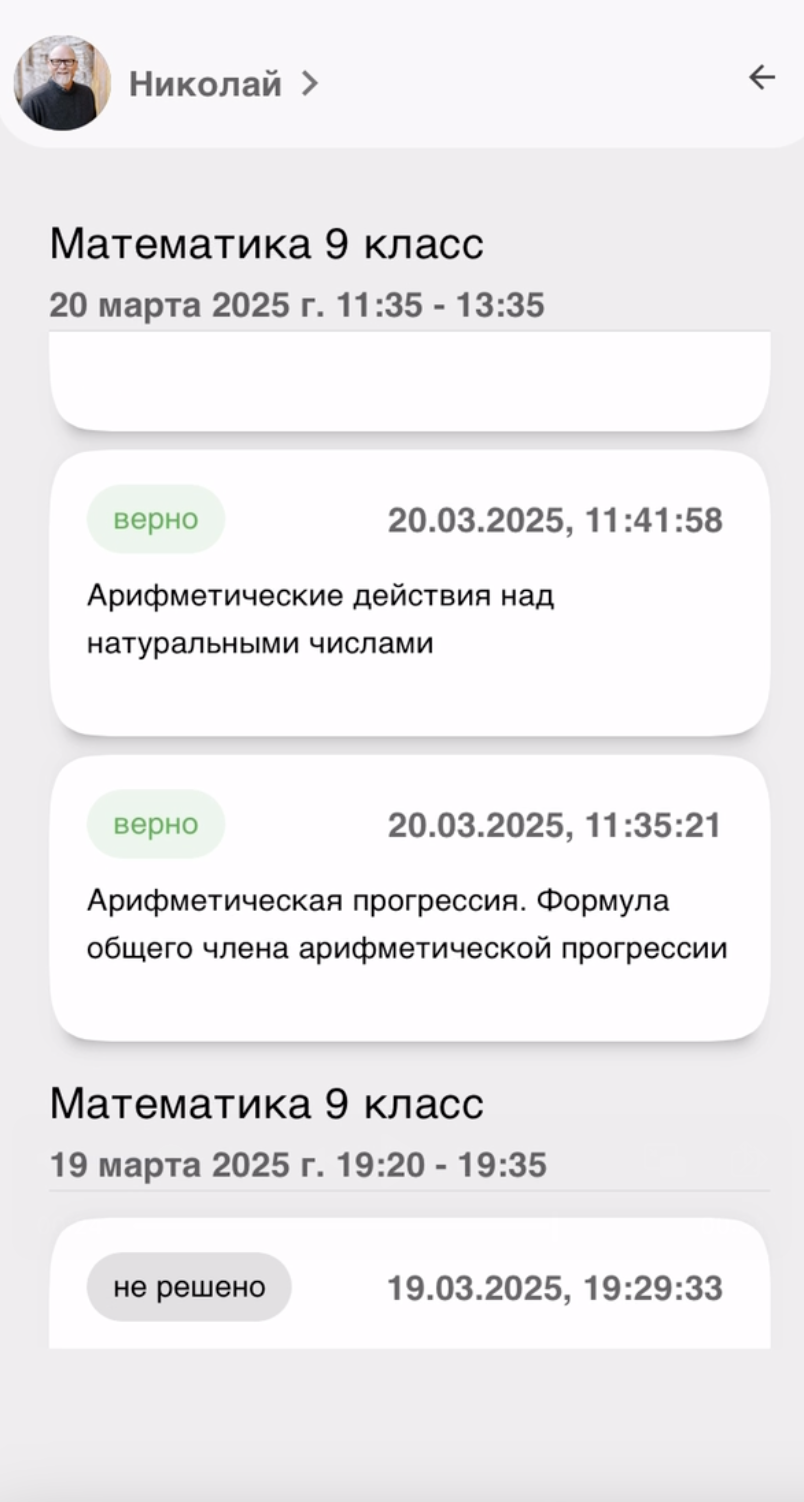 Как и при занятиях с обычным репетитором, мы не можем давать абсолютных гарантий, поскольку результат зависит от множества факторов: мотивации ребёнка, регулярности занятий, сложности материала. Но «Архиимед» удобнее и прозрачнее: вы всегда видите процесс обучения, можете корректировать нагрузку, отслеживать динамику прогресса и оперативно принимать нужные решения. Благодаря этому значительно увеличивается вероятность достижения желаемых результатов.