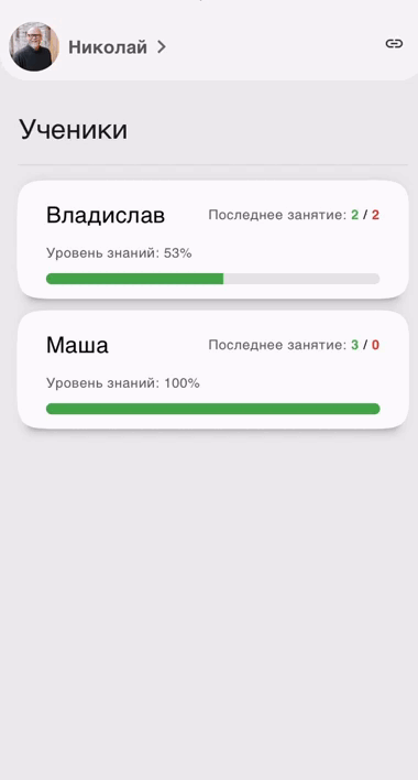 Взяли в сентябре студента-репетитора, не самого дешевого. А спустя пол года оказалось, что ребенок ничего не выучил… наткнулась в интеренете на приложение, решила попробовать. Действительно работает, будто с другой стороны сидит репетитор. Регулярно захожу и наблюдаю за прогрессом старшего сына, еще удобно настраивать график занятий. Нам очень нравится :)